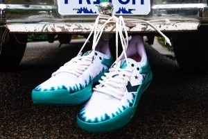 這雙Converse BB Trilliant PE設(shè)計(jì)靈感來(lái)源于他的家鄉(xiāng)俄勒岡州。俄勒岡州有“玫瑰之州”的昵稱(chēng),州花就是玫瑰,呼應(yīng)鞋墊元素,同時(shí)右腳鞋墊上還有他的個(gè)人Logo。而常綠針葉林,是俄勒岡州的代表性樹(shù)種之一,也呼應(yīng)鞋面的樹(shù)紋圖案。