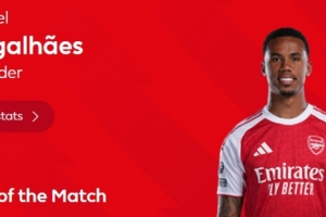本場比賽加布里埃爾為球隊(duì)先拔頭籌,賽后他也當(dāng)選英超官方球迷票選全場最佳球員。