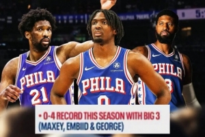 本場比賽恩比德、喬治、馬克西三人全部出戰(zhàn),本賽季此前這三位球員同時出戰(zhàn)時,76人的戰(zhàn)績?yōu)?勝4負,上賽季為7勝8負。