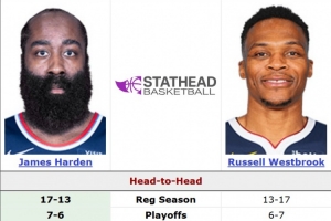 這將是哈登和威少常規(guī)賽生涯第31次交鋒,此前哈登17勝13負(fù)略戰(zhàn)小優(yōu),季后賽7勝6負(fù)差距不大。