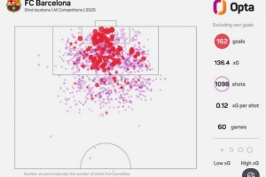 體育資訊12月31日訊 據(jù)數(shù)據(jù)網(wǎng)站OPTA統(tǒng)計,巴薩在2025年60場各項賽事共計打進(jìn)169粒進(jìn)球(包括烏龍球)。
