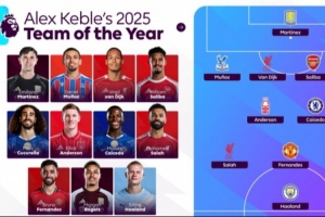 體育資訊1月1日訊 足球作家Alex Keble評2025年英超最佳陣,中衛(wèi)范戴克+薩利巴,B費(fèi)、哈蘭德、薩拉赫、凱塞多在列。