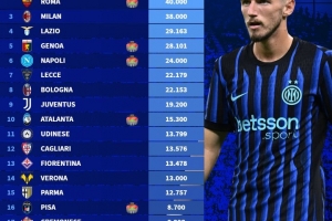 體育資訊9月24日訊 德轉(zhuǎn)盤點了意甲球隊的季票銷售情況,國米和羅馬均賣出4萬張季票,并列第一。