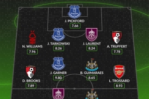 后衛(wèi):內(nèi)科·威廉姆斯(諾丁漢森林,7.96分)、塔科夫斯基(埃弗頓,8.26分)、約什·勞倫特(伯恩利,8.24分)、特呂費(fèi)爾(伯恩茅斯,7.78分)