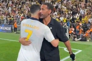 C羅的前曼聯(lián)隊友費(fèi)迪南德也來到現(xiàn)場觀戰(zhàn),并和C羅擁抱寒暄。