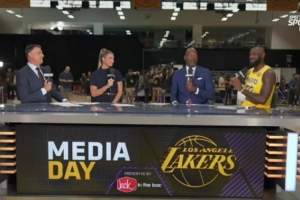 在即將結(jié)束與湖人官方轉(zhuǎn)播商Spectrum SportsNet的專訪時(shí),主持人問道:“明年媒體日咱們再見?”