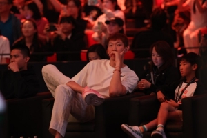 VIP!今天WTT中國大滿貫繼續(xù)在北京首鋼園進行,北京男籃球員周琦與陳盈駿來到現(xiàn)場觀看王楚欽林詩棟對陣瑞典組合的男雙比賽!