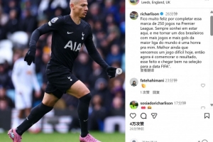 理查利森賽后也在社媒曬出本場(chǎng)照片,配文寫(xiě)道:“很高興能在英超聯(lián)賽中完成250場(chǎng)里程碑。我一直夢(mèng)想著能在這里踢球,成為在世界頂級(jí)聯(lián)賽中出場(chǎng)次數(shù)最多、進(jìn)球最多的巴西球員之一是我的榮幸。更令人高興的是,今天我們贏得了一場(chǎng)艱難的比賽,所以現(xiàn)在要慶祝這一切,并以最佳狀態(tài)迎接國(guó)家隊(duì)比賽日?!?/p>