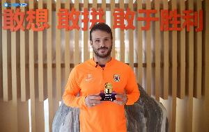 對(duì)陣國(guó)安上演大四喜的卡扎領(lǐng)取體育資訊第23輪最佳球員獎(jiǎng)杯
