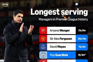 體育資訊10月13日訊 媒體統(tǒng)計(jì)了主帥連續(xù)執(zhí)教一家英超俱樂部的時(shí)間,并列出最長(zhǎng)時(shí)間排名,溫格21年零8個(gè)月居首,弗格森次席,瓜迪奧拉第4,阿爾特塔第10。