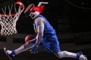 據(jù)了解,“嘻哈”是76人從1998年1月15日至2011年11月22日的吉祥物,是一個(gè)兔子形象的角色,通常會(huì)在比賽間歇時(shí)表演蹦床雜技扣籃,他還有一個(gè)小助手“小嘻哈”。“嘻哈”的扮演者比爾-羅特是前美國(guó)男子藝術(shù)體操?lài)?guó)家隊(duì)成員,曾在1995年泛美運(yùn)動(dòng)會(huì)上獲得1金2銀,“小嘻哈”則由他的女兒扮演。
