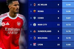體育資訊10月21日訊 德轉(zhuǎn)盤點了五大聯(lián)賽球隊本賽季至今場均最少失球榜單(各項賽事),其中阿森納場均丟0.27球最少,具體如下: