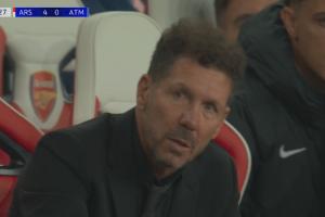 體育資訊10月22日訊 阿森納vs馬競進入補時前,鏡頭給到西蒙尼,此時馬競0-4落后!