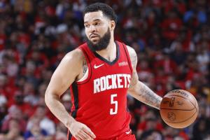 比賽中,名記Marc J.Spears發(fā)推寫道:“弗雷德-范弗里特正在某個(gè)地方搖頭?;鸺娴男枰硗庖幻匦l(wèi)?!?/p>