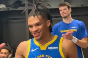 賽后,勇士更衣室內(nèi),理查德被獎勵了今天的比賽用球。