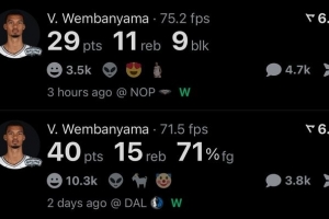 賽季前兩場,文班合計(jì)砍下69分26籃板12蓋帽,真是命中率68.2%,零失誤!