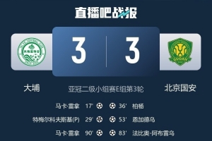 體育資訊10月25日訊 在周中進行的亞冠二級聯(lián)賽小組賽比賽中,北京國安客場3-3與中國香港球隊大埔戰(zhàn)平,