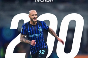 國米官推為其曬出紀(jì)念海報,并配文:“200場比賽,無限的激情!”