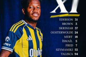 本場(chǎng)比賽同樣先發(fā)的還有前曼聯(lián)中場(chǎng)弗雷德。