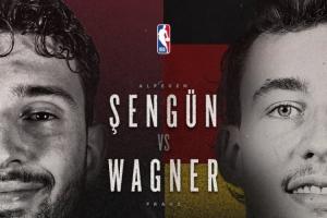在賽前預(yù)熱時,NBA給出的海報上是兩隊的箭頭人物——申京和小瓦格納;