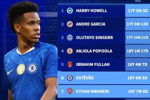 體育資訊10月30日訊 本輪聯(lián)賽杯完賽多場(chǎng),切爾西和阿森納雙雙晉級(jí),兩隊(duì)各有1位18歲小將破門(mén)。數(shù)據(jù)統(tǒng)計(jì)顯示,兩人分列聯(lián)賽杯最年輕進(jìn)球榜第6和第7位。