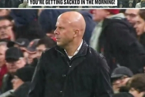 此役來到現(xiàn)場觀戰(zhàn)的部分水晶宮球迷嘲諷利物浦主帥斯洛特,他們對著斯洛特高唱“你明天早上就要被解雇了”。