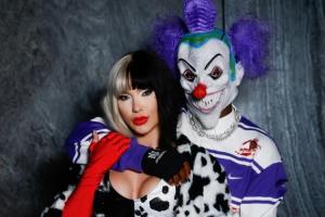 維尼修斯打扮成紫色的小丑,女友弗吉尼亞則cos了迪士尼動(dòng)畫《101忠狗》中的經(jīng)典反派角色庫(kù)伊拉,一同出cos的還有她與前夫的三個(gè)孩子。