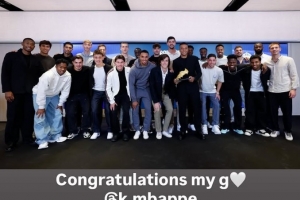 貝林厄姆也通過社媒曬出了皇馬全隊(duì)同手持金靴獎(jiǎng)杯姆巴佩的合影,并配文:“祝賀我的兄弟@姆巴佩”。