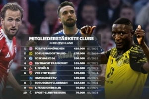 德國(guó)俱樂部注冊(cè)會(huì)員數(shù)量榜: