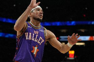 本場比賽,布克發(fā)揮出色,進攻端里突外投效率在線,且能串聯(lián)全隊進攻,他首發(fā)出戰(zhàn)39分鐘,23中13,三分9中6,罰球5中4砍下36分5籃板9助攻,正負值+19。