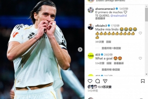 卡雷拉斯社媒曬出親吻皇馬隊徽的照片,配文:“很多進(jìn)球中的第一個。我愛你,皇馬?!?/p>