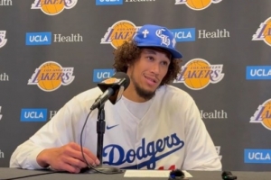 昨天洛杉磯道奇奪冠,完成衛(wèi)冕。海斯今天賽后穿了一件道奇的球衣參加采訪。