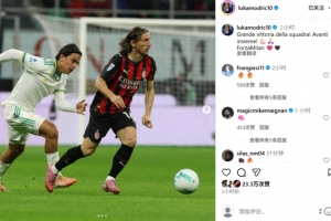 本場比賽40歲莫德里奇首發(fā)打滿全場,他也在社媒曬出本場與迪巴拉對抗照片,配文寫道:“團(tuán)隊(duì)取得偉大勝利!讓我們攜手前進(jìn)!加油米蘭!”