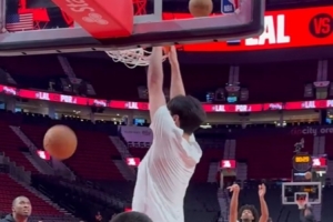賽前,開拓者跟隊記者@yovic曬出視頻,楊瀚森與助教羅尼-伯勒爾連續(xù)對抗熱身,籃下終結連續(xù)暴扣,勾手也連續(xù)命中。