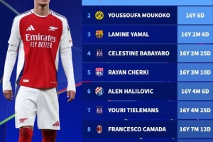 體育資訊11月5日訊 歐冠聯(lián)賽階段第4輪比賽,阿森納在客場以3-0的比分完勝布拉格斯拉維亞。本場比賽,阿森納15歲小將道曼替補登場成歐冠歷史出場最年輕球員。