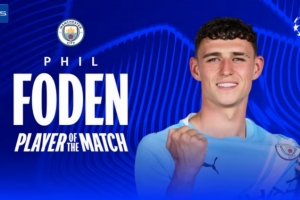 此役福登梅開二度,幫助曼城取勝,他當(dāng)選歐冠官方本場比賽最佳球員。