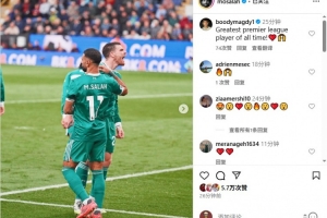 薩拉赫沒(méi)有為照片進(jìn)行任何配文,但不到半小時(shí)已獲得5.7萬(wàn)次點(diǎn)贊,有球迷也在評(píng)論區(qū)盛贊他為英超歷史最佳。