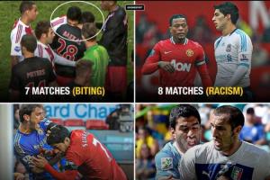 蘇亞雷斯生涯還曾因三次咬人被禁賽,2013年因為咬伊萬諾維奇被禁賽10場,還因為咬巴卡爾被禁賽7場,2014年因咬基耶利尼被禁賽四個月。