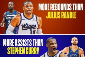 威少目前場(chǎng)均得分高于小薩(15.0>14.5)、場(chǎng)均籃板高于蘭德爾 (7.1>6.9)、助攻比庫里多(5.6>4.3)