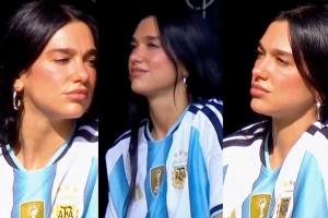 正在阿根廷布宜諾斯艾利斯舉行演唱會(huì)的啪姐Dua Lipa現(xiàn)場(chǎng)觀戰(zhàn)博卡青年vs河床的比賽,身著阿根廷最新國(guó)家隊(duì)?wèi)?zhàn)袍,并與里克爾梅合影。