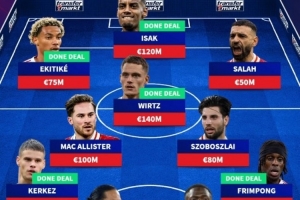 前鋒:埃基蒂克(7500萬,法蘭克福)、伊薩克(1.2億,紐卡斯?fàn)枺?/strong>、薩拉赫(5000萬)