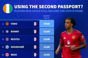 體育資訊11月22日訊 德國(guó)轉(zhuǎn)會(huì)市場(chǎng)更新社媒冬天,盤點(diǎn)了仍可以選擇為非洲國(guó)家隊(duì)效力的球員。