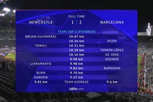 體育資訊9月19日訊 紐卡對陣巴薩的歐冠首輪比賽結束,最終紐卡1-2輸給巴薩,全場比賽的跑動數(shù)據(jù)也已經(jīng)公布。