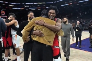 GIF-火箭&太陽賽后雙方球員敘舊擁抱