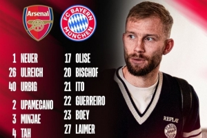 體育資訊11月25日訊 北京時間11月27日周四凌晨4點,歐冠聯(lián)賽階段第5輪,拜仁客戰(zhàn)阿森納,拜仁公布了此役球隊大名單。