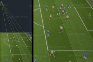 邊裁原本舉旗判罰了越位,SAOT(半自動越位系統(tǒng))不得不介入,糾正了他的錯誤決定。
