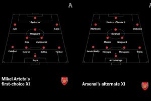 體育資訊09月19日訊 The Athletic撰文列出了阿森納的兩套首發(fā),展示了球隊的陣容深度,全隊總身價13.3億歐。此外,TA還預測了一下本周末阿森納出戰(zhàn)曼城時,首發(fā)11人可能的布陣。