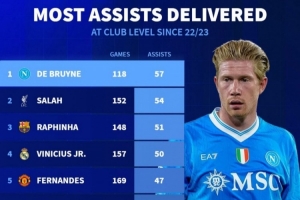 體育資訊9月19日訊 那不勒斯在昨晚歐冠焦點(diǎn)戰(zhàn)客場0-2不敵曼城,迎戰(zhàn)舊主的德布勞內(nèi)因戰(zhàn)術(shù)調(diào)整而早早被換下。不過《轉(zhuǎn)會(huì)市場》統(tǒng)計(jì)顯示,他仍然是最近3年俱樂部層面送出助攻最多的球員。