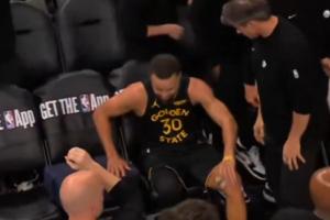 GIF-庫里暫停時坐不住 坐下突然彈起