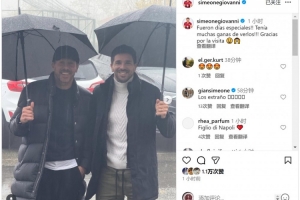 西蒙尼看望自己的兒子吉奧瓦尼·西蒙尼,后者社媒曬出父子合照,配文:“這真是無比特別的時光,我一直都渴望與你們相見,感謝你們的到訪?!?/p>